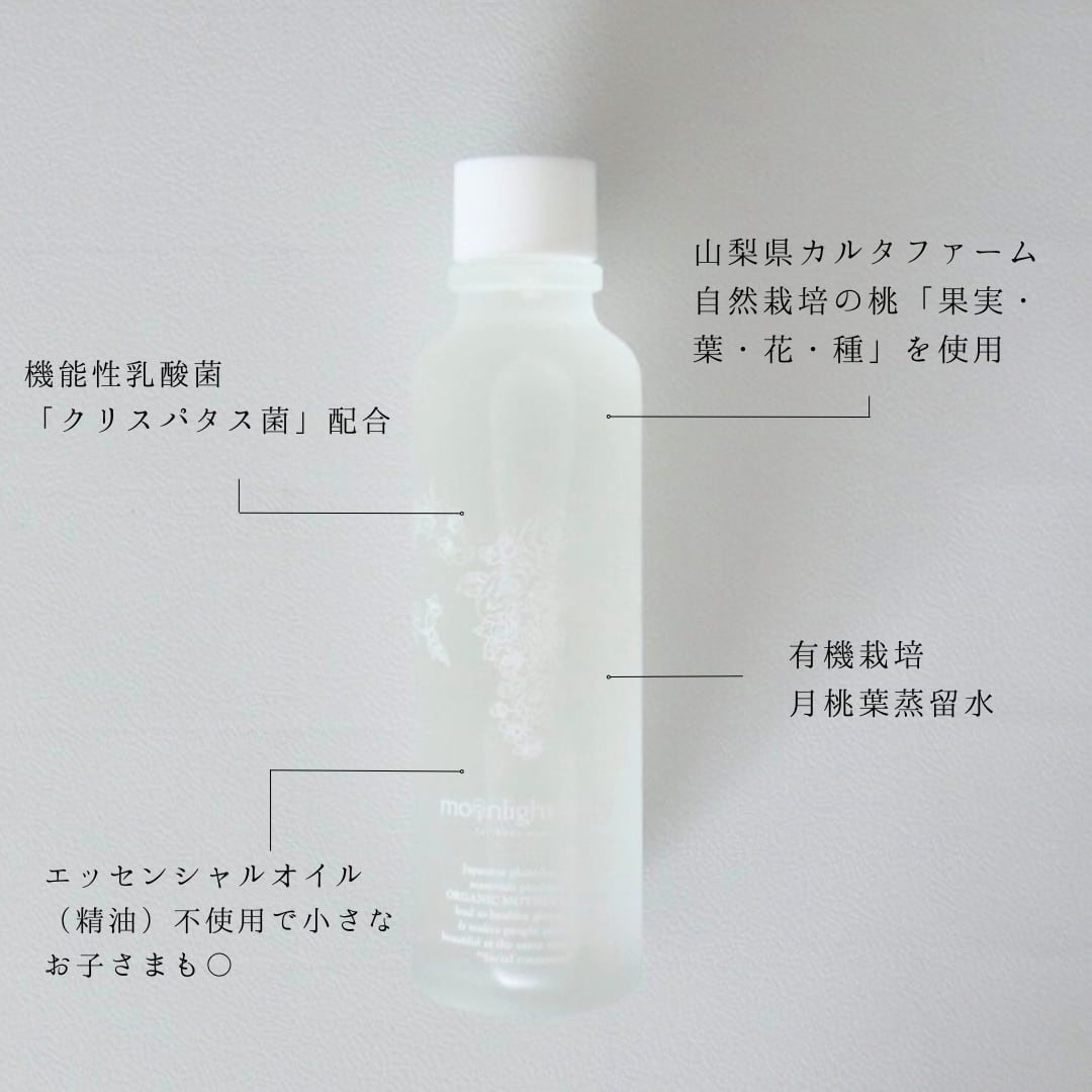 山梨県笛吹市産のモモ果実水は、自然栽培で育てられた果実を用いています。モモ果実水や葉エキスが持つ保湿力は、肌をみずみずしく保ち、潤いをもたらします。この豊かな自然の力を体験してください。