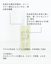 クロモジ水とティーツリー水を贅沢に使用し、肌を整えながら保湿効果を与えます。この2つの成分は古くから肌のトラブルリリーフに利用され、特にニキビ対策にも効果を発揮します。清潔感あふれる肌へと導きます。